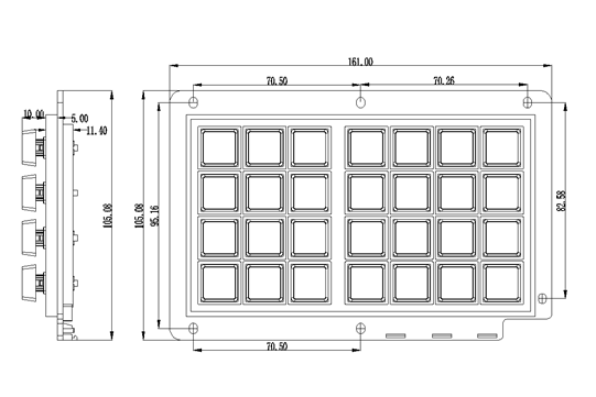 鍵開關(guān):采用全天然高品質(zhì)硅橡膠、薄膜和導(dǎo)電銀膠,